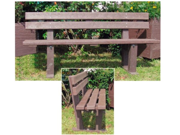 Sistemi di fissaggio in acciaio zincato a caldo. Grazie alla plastica riciclata avrete panche robuste, resistenti all’acqua e che non necessitano di alcuna manutenzione. Dim:180x50x82 cm, altezza seduta: 46 cm.Trasporto escluso.