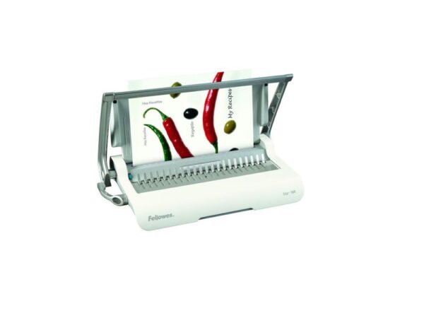 Rilegatrice manuale per dorsi plastici.Capacita’ di perforazione: 10 fogli.Capacita’ di rilegatura: 150 fogli. Massimo spessore dorso: 18 mm.Maniglia a tutta larghezza per perforazione con il minimo sforzo. Selettore dorso/fascicolo brevettato.Margine laterale di perforazione regolabile per un corretto allineamento dei fogli.