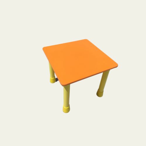 Tavolo realizzato con piano in nobilitato bordato in gomma antiurto, spigoli arrotondati. Gambe in polipropilene diam.60 mm avvitate al piano tramite basetta in plastica. Facile da pulire adatto sia per attività didattiche che per il pranzo. Piano disponibile bianco con bordo colorato, oppure piano colorato a scelta: arancio, celeste, verde, giallo e colore del bordo a scelta: rosso, arancio, verde, azzurro, nero, giallo, lime. Dim:65×65 cm – altezza materna 53 cm. Disponibile anche nella versione altezza nido. Seggiolina in polipropilene abbinabile art.962.01 da acquistare a parte.